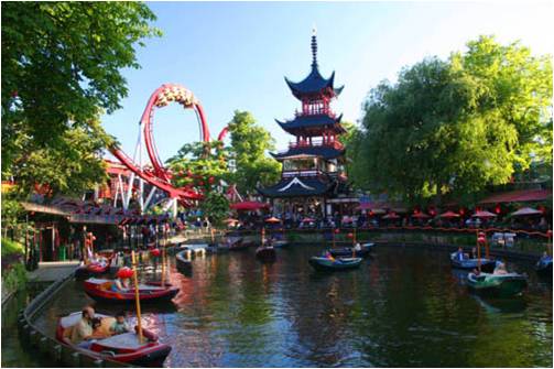 蒂沃利公园位于哥本哈根闹市中心,以巴黎蒂沃利花园和伦敦沃斯荷为原型建造,有“童话之城”的美称,是丹麦最著名的游乐园。公园于1843年8月15日起开始接待当地居民和外来游客。最初只是群众集会、跳舞,看表演和听音乐的场所。后来几经改造,才逐渐形成一个老少皆宜的游乐场所。