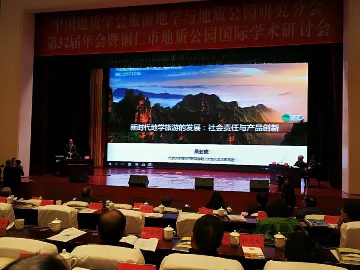 12月5日,中国地质学会旅游地学与地质公园研究分会第32届年会暨铜仁市地质公园国际学术研讨会在贵州省铜仁市人民大会堂开幕。来自国内外各地地学界、旅游界的学者、专家和世界地质公园、国家地质公园的管理者齐聚一堂,共商新时代中国地学旅游发展大计。北京大学城环学院旅游研究与规划中心主任吴必虎教受邀出席并发表题为《新时代地学旅游的发展:社会责任与产品创新》的主旨演讲。