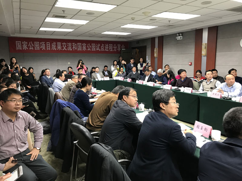 来自国家公园体制建设相关的政府部门、科研机构、国家公园试点区和非政府组织等几十位代表出席了此次会议,解读《建立国家公园体制总体方案》(下称《总体方案》),及当前国家公园体制建设的核心问题;交流各方国家公园相关议题研究情况,探索《总体方案》落地所需的理论依据、科学技术支持、政策创新和实践操作。分析国家公园试点区建设进展、困难和诉求,讨论国家公园研究如何进一步支持试点建设。