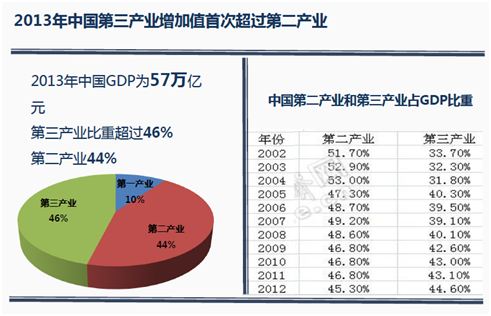 那么,中国这样一个第三产业的比重从2013年开始已经超过第二产业的经济国情,就意味着我们中国的经济需要一个大的调整。