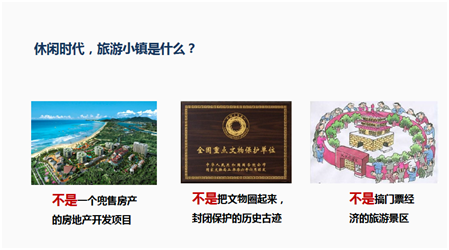 那么,第二个问题,跟大家分享的就是,旅游小镇,它意味着什么?什么才叫旅游小镇?