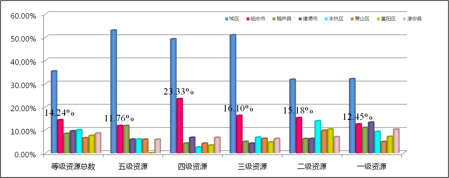 图3:杭州市各地区旅游资源在全市所占比率对比分析图