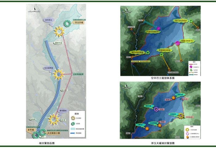 立足于此,本项目根据大创意打造新项目的思路,构建了四个大板块项目系统,即:一是打造空中巴士、东关溪漂流、杭州山地汽车文化公园三大项目 “让杭州动起来”;二是打造浮玉天城引领“杭州休闲向上看”;三是立足养老分众休闲市场打造金鸡坞山地养生园(+老年宜居城);四是打造天目旅游小镇助推天目山走向名山旅游目的地的建设。