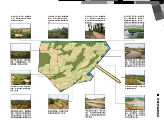 规划区块位于陕西北部榆林市北侧的金鸡滩镇,位于毛乌素沙漠南缘,为风沙草滩区, 场地内高差小,视野开阔,河流从东北向西南方向流过。