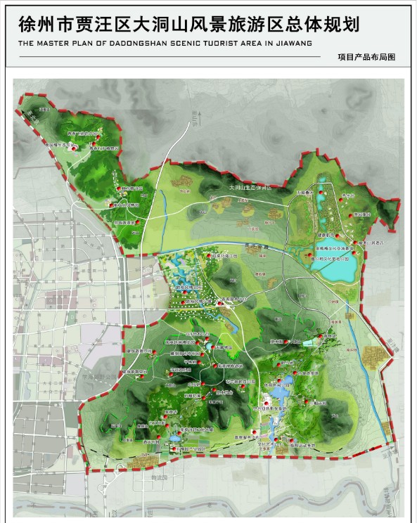 大洞山位于徐州市贾汪区东南6公里处,海拔361米,为徐州第一高峰。大洞山又名“茱萸山“,诗人王维“遍插茱萸少一人” 的千古名句赋予了大洞山登高文化、诗人文化、亲情文化等多样化的文化底蕴。规划通过特色诗园、古文化长廊、合家欢部落等项目,走“轻文化”的路子,使文化巧妙的渗入到规划开发当中。