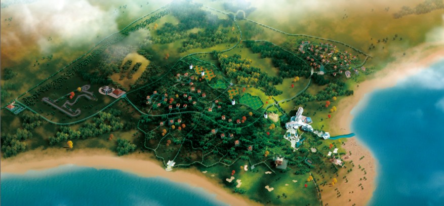 规划以“国际一流的生态建筑群和纯粹的生态娱乐主题乐园”为点亮项目,兼顾“生态和旅游”双重效应,在“生态品牌效应”的指导下开发两大产品体系:生态商务度假产品体系重点开发以生态建筑博览园为主要建筑群的商务度假村以及度假配套产品;生态休闲体验产品体系重点开发以鸟岛、水乐园、滨湖浴场、泥浆乐园、草原营地、集体拓展区为主的绿野寻踪主题乐园产品。由于特殊的生态要求,景观效果设计上突出“边缘景观元素”主要包括廊道边缘景观(道路、水系)、原野边缘景观(草场、田缘、野地)、节点边缘景观(交通型节点、游憩型节点、聚落型节点、生态型边缘)设计模式,项目规划理念大胆可行,得到环保、旅游等各界专家赞誉。