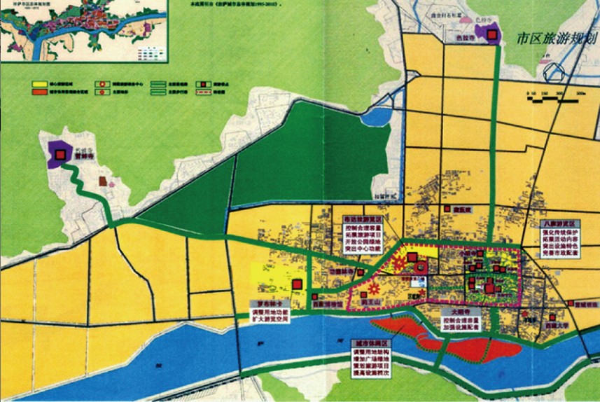 由于城市发展和经济增长,拉萨市城市面貌变化得很快,拉萨古城在此过程中历史遗存逐渐分解、流失,重要景点的周边环境遭受破坏,古城的整体风貌受到威胁,削弱了古城的特色及文化底蕴。规划认为,拉萨古城的历史文化遗存是其进行旅游开发的基础和前提,保护古城的历史风貌是规划的首要任务。古城的风貌保护不仅体现在物质层面的保护,即保护城市的整体格局,街巷风貌以及单体的建筑、遗迹;还包括对非物质文化遗产的保护。规划运用塔式心理学中的图与底的关系转换理论,提出在古城历史保护中,不仅要重视单体纪念性建筑遗迹即“图”的保护,还应重视对“底”的保护,也就是对传统民居、街巷空间、古树名木等构成的历史环境的保护。规划将对拉萨古城的历史环境保护分为三个层次:基础的文物古迹保护和民居的整体景观保护;城市肌理——街道空间的保护;古城独特整体格局的保护。以此维护古城风貌的连续性和完整性,营造古城的整体氛围,创新古城的生命力。