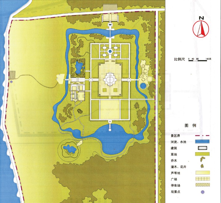 以鹳雀楼为主体,呈“回”字型分布,形成“三区、九点”的空间结构。该规划起点高、手段新、立意好,受到甲方的高度评价。一期工程已于2004 年底完成并对外开放,产生经济效益(门票收入)1500 余万元。2005年被中国旅游年会评为“最具投资潜力的景区”。