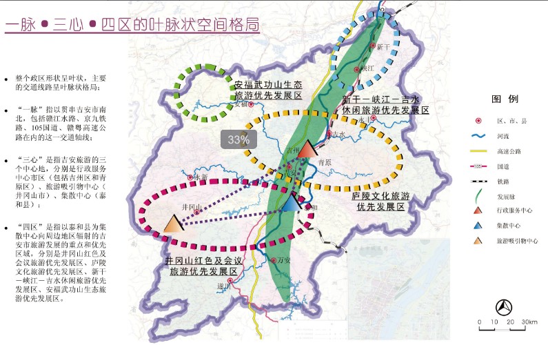 旅游引擎:会议拉动会展旅游被誉为“旅游之花”,具有游客规模大、驻游时间长、旅游消费高、关联效应强等优点,对提高举办地的知名度有深远影响。井冈山是被全国的党政单位认可的会议目的地,具有发展会议旅游得天独厚的优势条件。规划建议将政务类会议旅游产品作为吉安旅游业的突破性产品,通过实行“(井冈)山上政务会议先导,山下(泰和)商务会议策应”的战略,带动其他旅游产品发展。规划还建议借鉴北美的经验,在吉安市成立旅委会,作为政府的职能机构,专门负责吉安市会议旅游的促销、管理及接待工作。