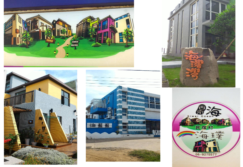 澎湖有一家民宿叫西卫海民宿村,共有5家民宿,在20年前,一个因缘际会,这5家民宿主人各一个人,曾在同一家公司上班,有一次到国外公司旅游。大家情投意合,就说我们也来桃园三结义,5个人相约退休以后,共同买一块地,住在一起;结果尚未等到20年,其中一个揭竿而起,提议,我们现在就来退休,好不好?大家都说好。于是,他们就在澎湖西卫海的海边,买了这块地,因为这个地不是很平整,有点前面宽后面窄。他们将这块地请设计师规划后,中间是共用区,共规划了A、B、C、D、E五个区,用抽签的方式,看谁抽到哪里,那块地就是他的。然后就各自盖自己喜欢的房子。盖好以后,他们发现现在还太年轻,没办法五十岁出头就退休养老,商议结果,改做民宿好了。西卫海民宿村每一个房子都不大,只有5个房间,他们约定,每一家民宿的名字都要冠上”海”,叫海湾湾、海蓝蓝、海之径、海璞、海旅巢;每一家民宿房子的造型都不一样,有黄色系,蓝色系,绿色系,红色系、紫色系。这五家民宿,平时可以自己接待自家客人,如果来了一部游览车的团体,可以分到每一家民宿,可以化整为零共同接单。这是5个人相约圆梦、一起盖民宿的案例。