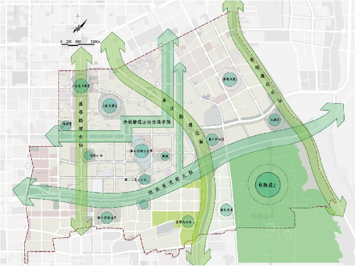 点击次数:928本规划在分析了西安曲江新区扩区的背景和机遇、必要性与意义的基础上,提出曲江新区扩区后遵照“双轴合理、五区联动”的空间发展布局。“双轴”即“生态发展轴”和“产业发展轴”,贯穿区域南北东西,形同弓箭,平衡文化与产业发展格局。“五区”指“五大项目集群”,五大区域共同发力,实现“大曲江、大生态、大文化、大产业”的目标。