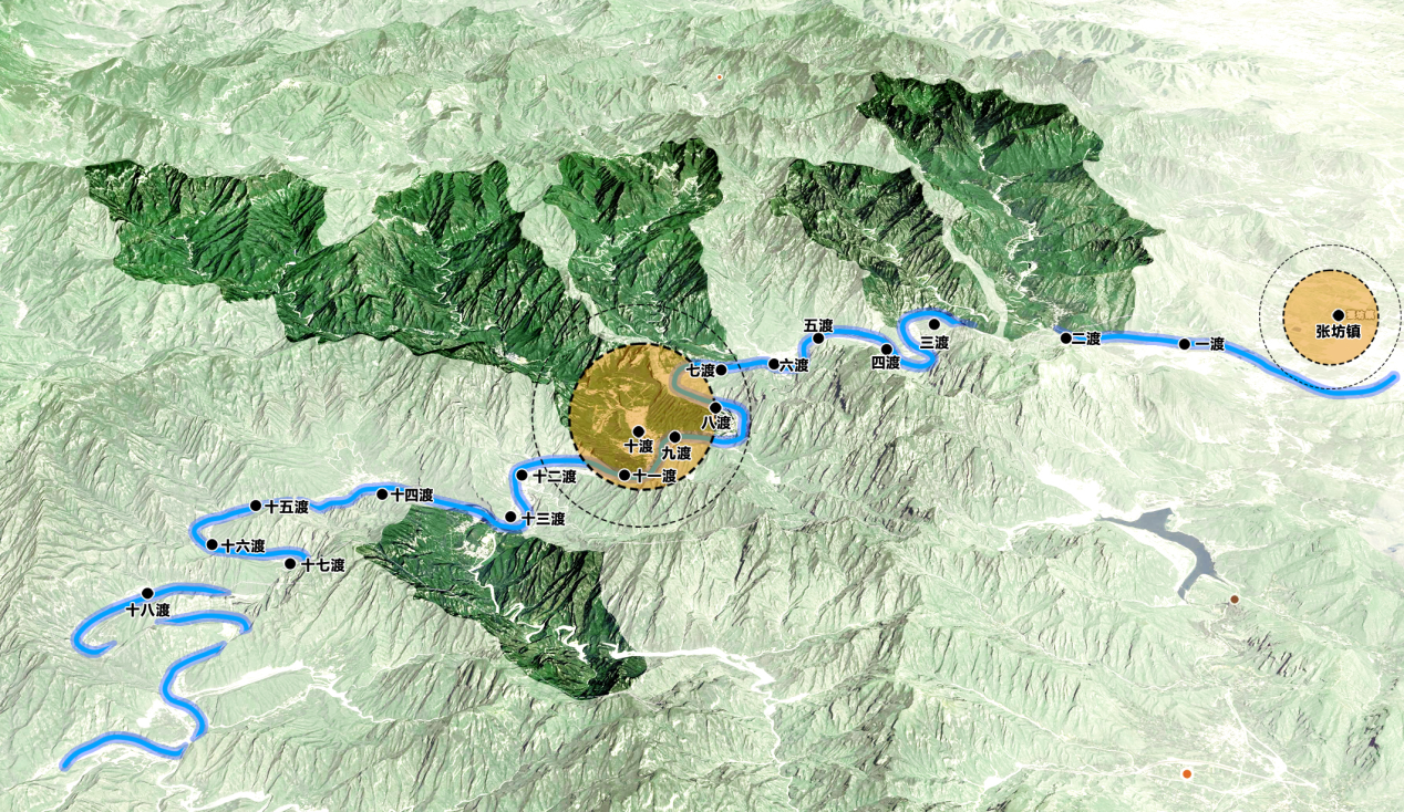 2015年4月,北京大地风景旅游景观规划设计有限公司在《十渡旅游型城镇化专项报告》中提出,由拒马河沿岸向沟域内辐射发展,规划范围包括十渡镇全域和张坊镇一到四渡及其周边区域,规划总面积296.8平方公里。
