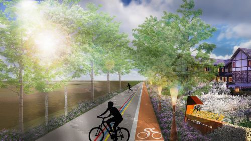 本次规划设计了“1+1的模式”——“一路一带”的建设路径。通过核心大堤路的提质改造,再融入路两岸文化景观产业带的创新打造,共同构筑绿色休闲廊道体系,让整条国家风景廊道充实饱满。“一路”指风景道系统工程+驿站体系,构筑核心的休闲体验交通线;“一带”为风景文化+全域休闲+产业示范的三大功能合一的体验空间,为风景廊道融入黄河景观文化亮点。