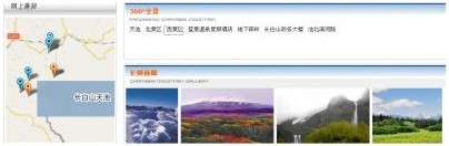 同类型的景区虚拟游还有几个,最后慎重考虑下把长白山选进来,作为北方极少数做虚拟游的景区,由于它的全景和景区导览图没有结合,有把景区割裂的感觉,外加很多全景图片制作粗糙(修图、清晰度有待提高)。不过亮点是增加了多媒体表现手法也算不错的结合。