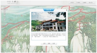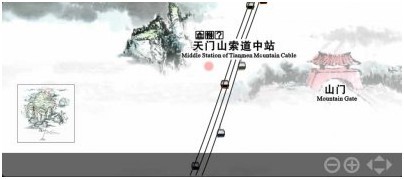 张家界天门山的虚拟游览图,也算是早几年的作品,但是他的思路和模式为后来者提供了很好的参考,参与性和互动性非常好,为准备前去景区参观游览的客人提供清晰直观的路线参考,当然缺点就是还是图片和文字组合,这张flash导览图做的很漂亮,打开也需要一定时。