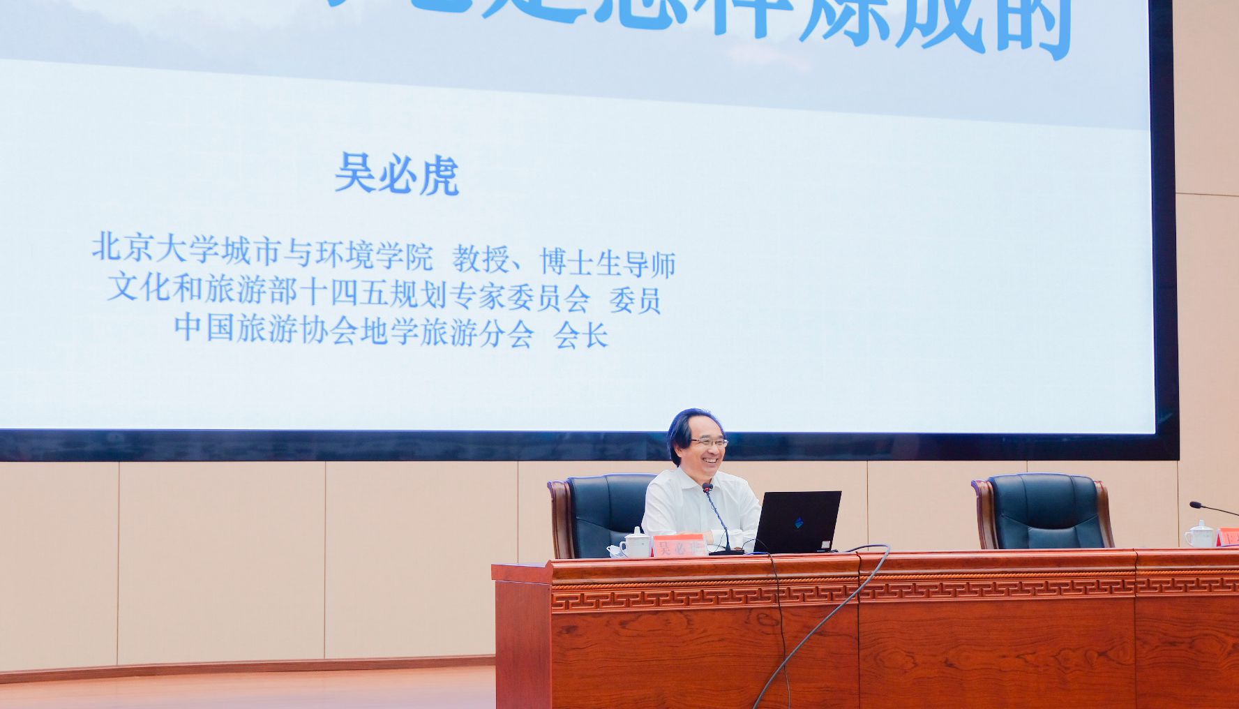 为提高地方旅游景区建设和管理水平,持续推动河南省旅游景区、旅游度假区和乡村旅游的高质量发展,河南省文化和旅游厅于2023年8月22日至24日在信阳市举办全省旅游景区和旅游度假区标准培训班。北京大学城市与环境学院旅游研究与规划中心主任、国际旅游研究院院士、文化和旅游部“十四五”规划专家委员会委员吴必虎教授受邀参加并发表主题讲座。