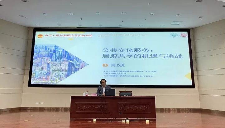 “文化和旅游公共服务机构功能融合试点工作培训班”在浙江省湖州市开班,北京大学城环学院旅游研究与规划中心主任、国际旅游研究院院士、文化和旅游部十四五规划专家委员会专家委员吴必虎教授应邀为学员们带来了题为《公共文化服务:居游共享的机遇与挑战》的专题授课。