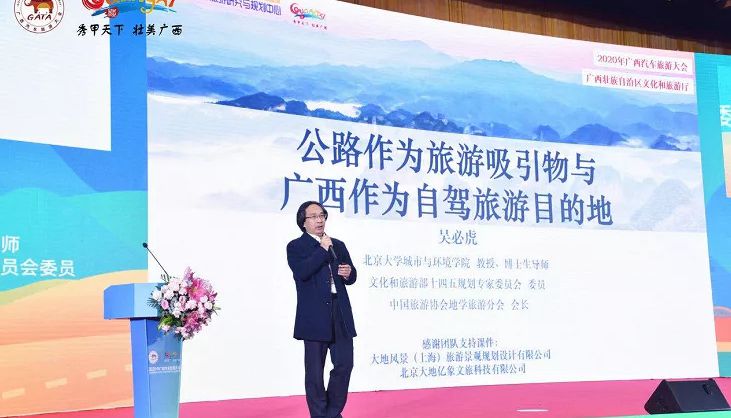 国际旅游研究院院士、文化和旅游部十四五规划专家委员会委员、大地风景文旅集团首席科学家、北京大学教授吴必虎应邀出席2020年广西汽车旅游大会,并发表了题为《公路作为旅游吸引物与广西作为自驾旅游目的地》的主旨演讲。