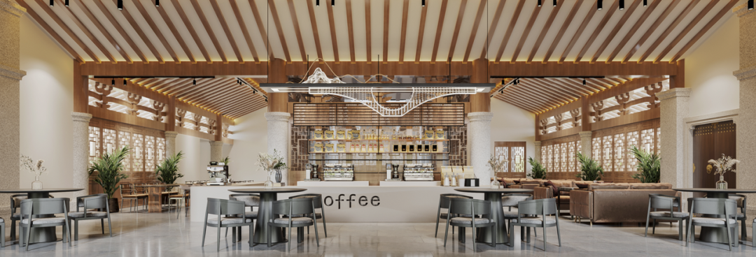依托魁星山庄南区综合楼现有建筑空间,将其改造为以魁星文化为主题的魁文化研学中心,应用“斗”和“星”的意向元素在建筑立面造型中进行变化演绎,突出魁星岩项目的文化主题。文化馆设置会议、展览、研学活动等空间,分别开展高端魁星文化会议交流、魁星文化主题展览、魁星文化研学沙龙等内容。