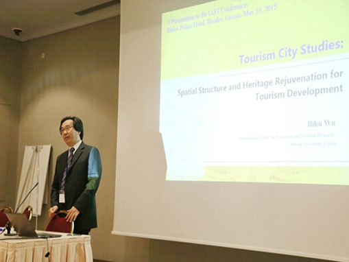 2015年5月27日,吴必虎教授在希腊罗德岛国际旅游研究院院士大会上作《旅游城市研究》学术报告