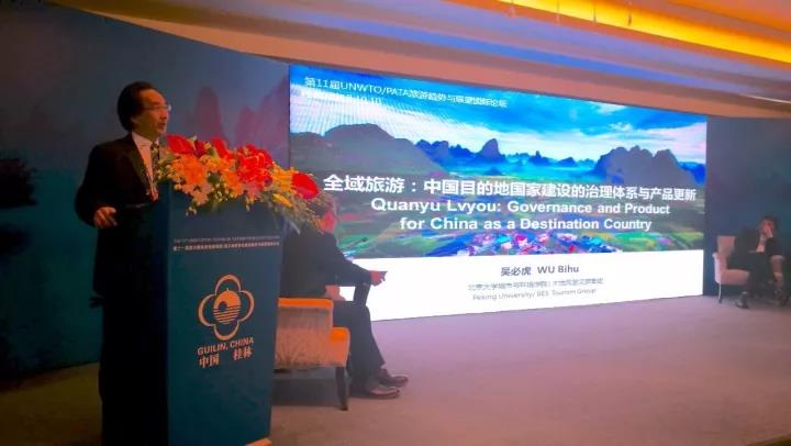 由联合国世界旅游组织(UNWTO)、亚太旅游协会 (PATA)主办、香港理工大学协办、桂林市人民政府承办的第十一届联合国世界旅游组织/亚太旅游协会旅游趋势与展望国际论坛于2017年10月10日-12日在桂林香格里拉大酒店举办。北京大学城环学院旅游研究与规划中心主任吴必虎教授受邀出席并在专家会议作主旨演讲。