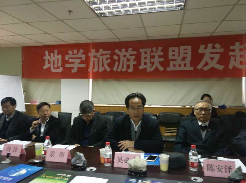 2016年1月8日,地学旅游联盟发起人大会在北京成功举行。本次大会由中国著名旅游地学专家陈安泽先生和郭来喜先生共同牵头,来自中国科学院、中国地质科学院、中国地质调查局发展研究中心、中国旅游人才发展研究院、北京大学、中国地质大学、北京师范大学、南京大学、首都师范大学、北京交通大学、北京第二外国语学院、长安大学、东华理工大学、中国城市规划设计研究院、北京清华同衡规划设计研究院、大地风景国际旅游集团、北京巅峰智业旅游文化创意股份有限公司、来也旅游发展股份有限公司、北京大衍致用旅游规划设计院等全国各地二十几家高校、相关企事业单位代表参与了会议。北京大学旅游研究与规划中心主任吴必虎教授被推选为首任主席,北京大地风景旅游景观规划设计有限公司总经理杨小兰女士被推选为副秘书长。