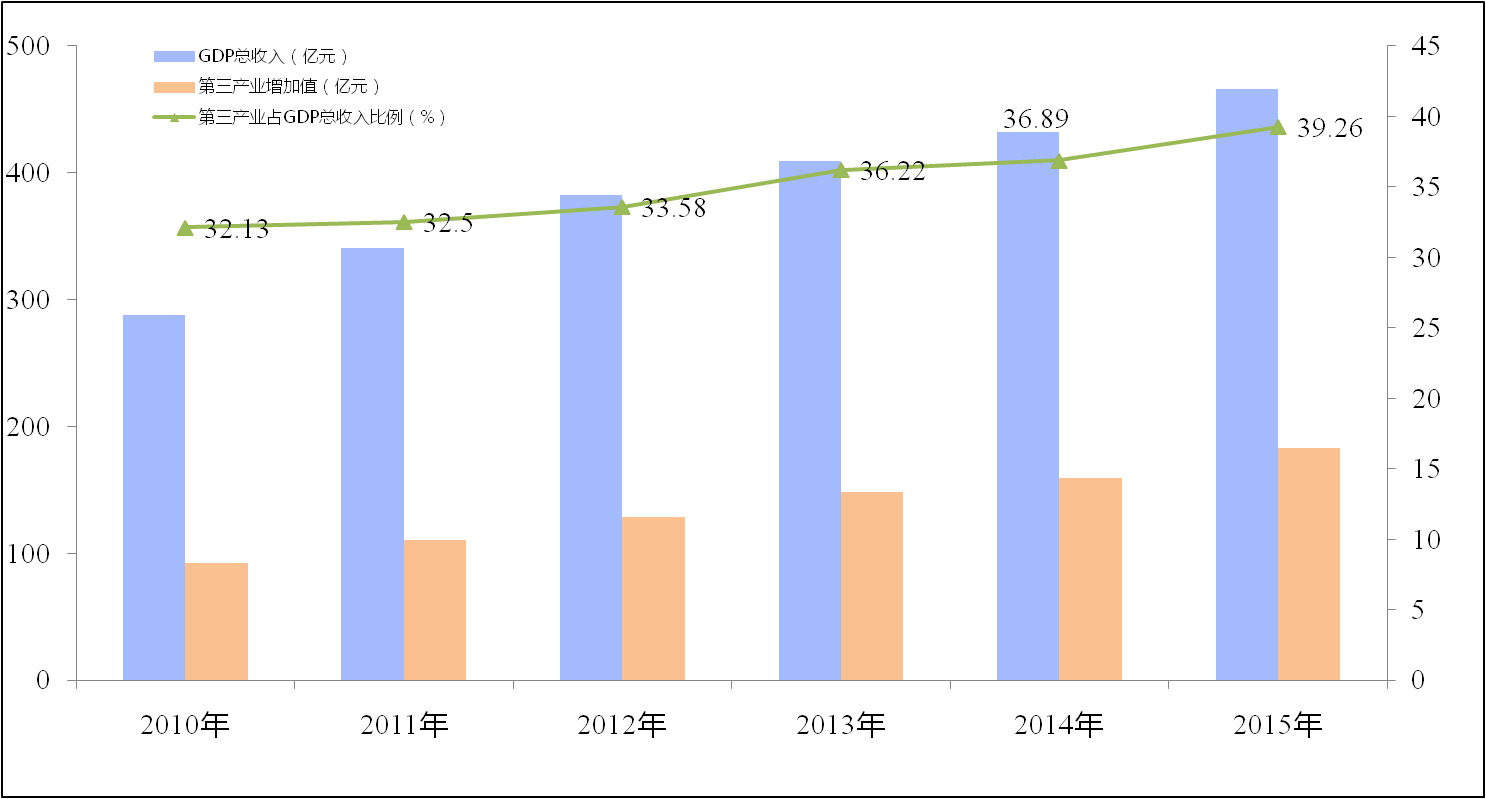 图6:近六年临安市第三产业增加值与GDP对比分析图