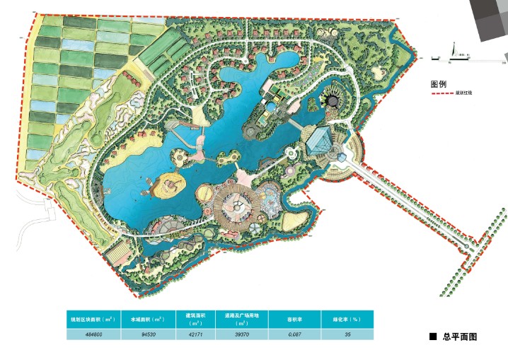 四区:旅游综合服务区、沙水主题娱乐区、主题养生度假区、生态观光游览区;