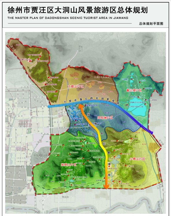 大洞山位于徐州市贾汪区东南6公里处,海拔361米,为徐州第一高峰。大洞山又名“茱萸山“,诗人王维“遍插茱萸少一人” 的千古名句赋予了大洞山登高文化、诗人文化、亲情文化等多样化的文化底蕴。规划通过特色诗园、古文化长廊、合家欢部落等项目,走“轻文化”的路子,使文化巧妙的渗入到规划开发当中。