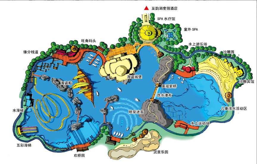 规划以“国际一流的生态建筑群和纯粹的生态娱乐主题乐园”为点亮项目,兼顾“生态和旅游”双重效应,在“生态品牌效应”的指导下开发两大产品体系:生态商务度假产品体系重点开发以生态建筑博览园为主要建筑群的商务度假村以及度假配套产品;生态休闲体验产品体系重点开发以鸟岛、水乐园、滨湖浴场、泥浆乐园、草原营地、集体拓展区为主的绿野寻踪主题乐园产品。由于特殊的生态要求,景观效果设计上突出“边缘景观元素”主要包括廊道边缘景观(道路、水系)、原野边缘景观(草场、田缘、野地)、节点边缘景观(交通型节点、游憩型节点、聚落型节点、生态型边缘)设计模式,项目规划理念大胆可行,得到环保、旅游等各界专家赞誉。