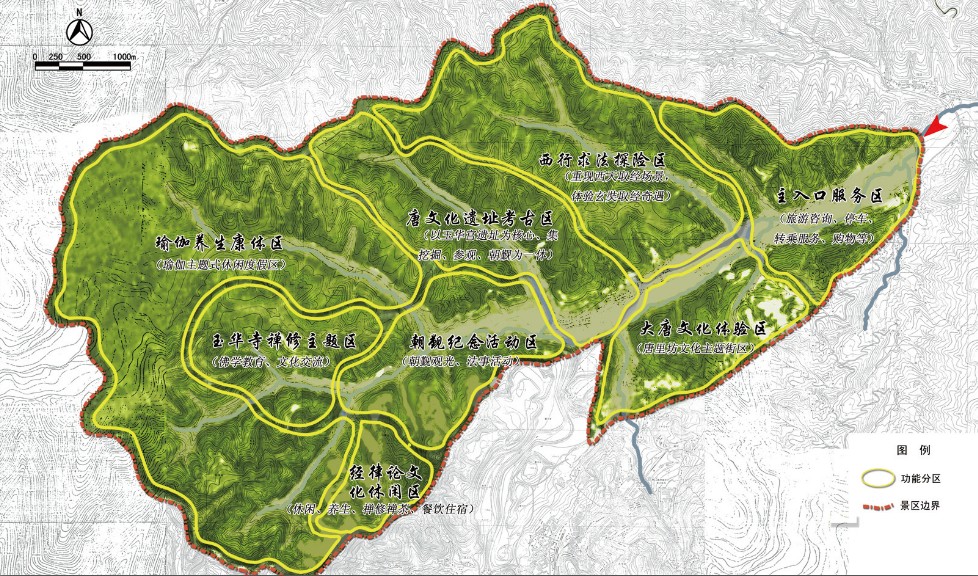 规划通过日本奈良药师寺的玄奘文化分析,提出以玄奘文化为核心亮点,以佛教文化和大唐文化为突破口,融合玉华山千年积淀的佛教文化和奇秀的自然景色,将玉华山打造成独具特色的第五大佛教名山、中外佛教文化的交流中心、玄奘文化的最佳体验圣山,成为以生态和文化全景式特色体验的国际宗教文化旅游目的地。