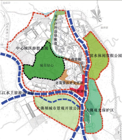 四川乐山是中国仅有的5处世界双遗产坐落城市之一。如何整合峨眉山和乐山大佛的历史文化遗产,乐山古城墙等文化资源,带动周边其他区县的旅游产业发展,更新传统产品结构,在更广泛的目标市场占有更多的客源市场,规划小组进行了潜心思索和深入研究,探索其旅游发展的症结因素。由此,确定了乐山市的战略目标:坚持市场经济主导下的区域旅游管治体系的改革方向,以旅游目的地营销和旅游目的地质量管理为手段,全面巩固和拓展国内和国际两个市场,不断完善城市旅游产业集群发展的要素系统。