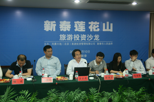 2012年5月10-11日,大地风景第十二期旅游投资沙龙暨新泰莲花山旅游投资推介会于山东新泰当地举行。来自北京、上海的多名业内专家及投资界精英受邀参与了本次沙龙。泰安市委常委、新泰市委书记张宏伟到场致辞,并与大家互动交流。沙龙首次离开北京到旅游项目所在地举行,可谓大地风景旅游投资沙龙的又一新鲜探索。