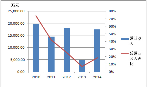 园林园艺是世博集团的核心业务之一,但由于对内部业务依赖性过高,一直以来市场竞争力不高,市场占有率也较低。2011年集团对园艺公司增资1,000万,2014年又购买江南园林80%的股权,实现了公司与江南园林在资本优势与市场优势方面的有效互补,开始了集团向全国市场拓展的第一步。2014年江南园林实现收入7,935.21万元,毛利率在21%左右。
