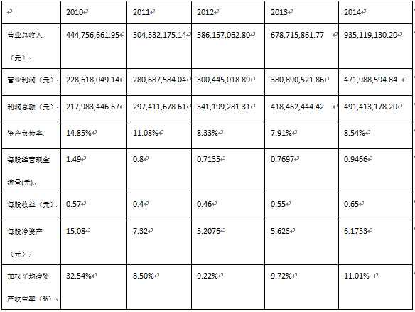 4.宋城演艺当前的每股净资产和净资产收益率处在良好的水平。每股净资产值反映了每股股票代表的公司净资产价值。每股净资产值越大,表明公司每股股票代表的财富越雄厚,通常创造利润的能力和抵御外来因素影响的能力越强。根据最新数据(2015年3月31日)在当前的A股市场上,每股净资产值最高的是贵州茅台,达50.60元。尽管宋城演艺的每股净资产为6.3472元,但其股票价格仍处在较高的位置(6月17日报收76.67元),说明投资者看好该公司未来的发展,股票溢价很多。
