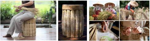 收完麦子之后麦秆一直作为废弃物,或当柴火或焚烧,也造成了空气污染。台湾设计师徐景亭和萧永明则利用这些废弃的麦秆,制作成牢固的椅凳。首先是将麦秆捆成一个支柱,然后再利用掉落的麦子灌入树脂凝固成形,使得农业废弃物摇身一变为家居艺术品。