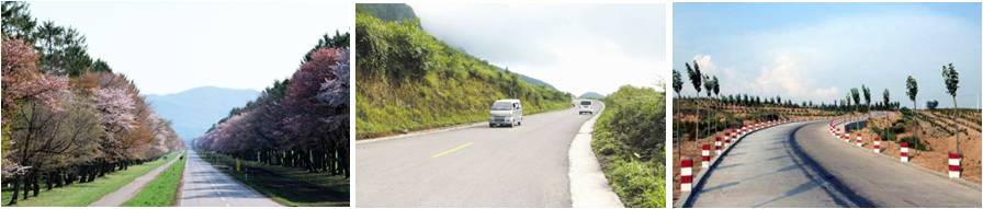 乡村外部交通升级:乡村外部的道路交通必须保证畅通整洁,路面硬化情况良好,警示避让标识系统完善,道路两旁绿化充分,无违章建筑和乱堆乱放等现象,材质一般为沥青、水泥等。