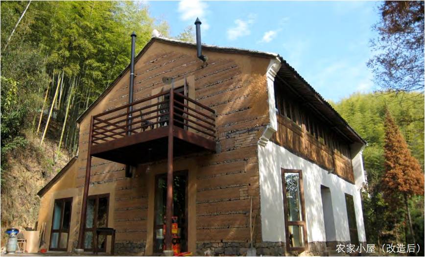 乡村生态环境相对敏感和脆弱,乡村住宿设施设计既要考虑经济效益,更要强调生态效益,以减少对生态系统的干扰和对自然环境的破坏,使乡村环境具有良好的生态循环再生能力。首先,建筑及景观设计要以环境情况为基础,选择合理朝向,顺应地形地貌,保护农田肌理、溪流水景等自然元素,力求规模恰当、形制适宜,使人工构筑物与生态环境和谐共存;其次,采用环保型建筑材料及建筑技术,利用太阳能、沼气等清洁能源,争取自然通风采光,注重节能节水,并对废弃物进行适当处理,减少污染。