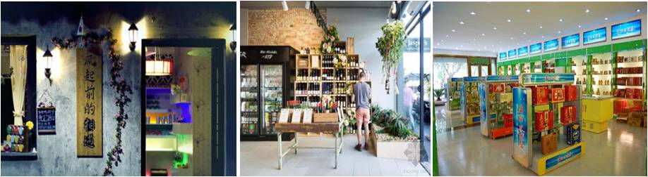 专门面向游客的旅游商品购物店可以极大的提高游客的购物体验。这类专营店一般会统一注册商标,进行品牌和商品包装设计,采用乡土元素的建筑装饰风格,采用自助购物方式;乡村旅游商品一般包括土特产、民俗手工艺品、文化创意产品等。