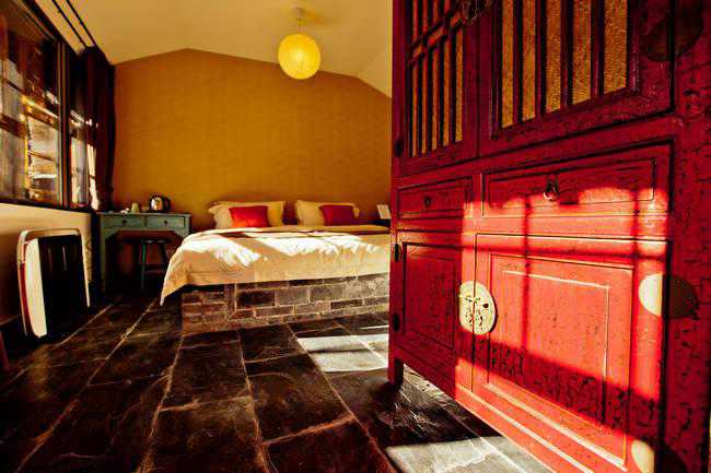 山里寒舍最大的特点就是具有乡村的原始生态特征,开发不破坏当地环境,保留了原有的古老建筑外貌。在开发建设过程中,最大限度地使用当地的石材和木料,最大限度地保护民居的原始状态。酒店房间在原有老房基础上改造装修而成,从外面看还是村民老宅,木门、木窗、椽子、石头院墙等都得到保留。而室内却别有洞天,糅合了中西设计,融合了古朴与现代理念,创建了古朴而不失现代化的混搭风。五星级的客房及卫浴设施,中西餐厅,无线网络覆盖,是最乡土的资产升级模式。