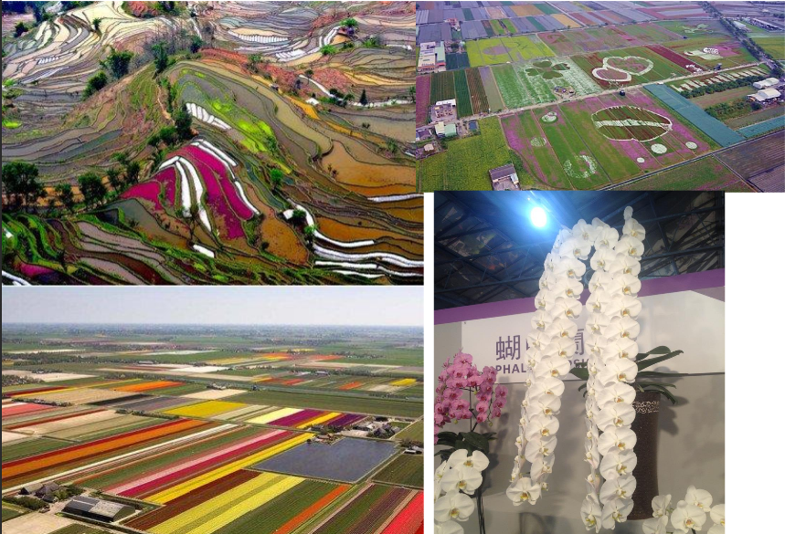 云南的梯田、荷兰的郁金香,台湾的小型花海,都可以达到吸引人潮的效果。小小的一株蝴蝶兰,如果懂得,也可以达到感动顾客的效果。每年的3月、4月,台南市都会举办一个国际兰花展。画面上的这一株蝴蝶兰,是2013年冠军兰花,为什么会夺得冠军呢?如果各位懂得这一株蝴蝶兰的特异奥妙之处,就会受到感动。正所谓「外行人看热闹、内行人看门道。」许多东西,必须要懂得欣门道,才会感动,这个懂,就代表你是看懂门道。首先,大家必须了解蝴蝶兰的特性,蝴蝶兰开花时节,一朵一朵之间要相隔几天,含苞待放的那一朵才会开花?有人猜3天,有人猜5天,正确答案是5天。数一数这一株蝴蝶兰总共有几朵?这一株冠军兰,有两束花,每一束同时花开30朵,从第一朵开到最后一朵开,相隔150天,朵朵盛开,过了五个月,从第1朵花至第30朵花依然盛开状态,没有凋谢,怎么可能?这个怎么可能?也就是这一株蝴蝶兰拿冠军的原因。农业转型发展乡村旅游,就要把这个门道讲出来,用浅显易懂的话语说出来,游客才会感动,才会珍惜。