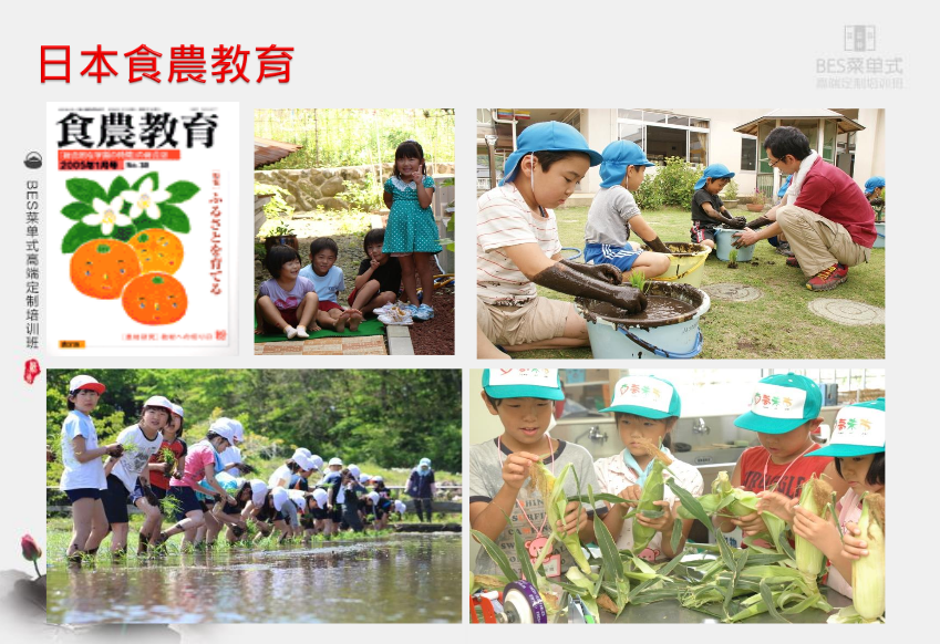 日本的食农教育已推行多年,具有显著成效。例如上图的画面,小朋友们手上拿着水果玉米,似乎想吃,又舍不得吃,因为这个玉米,跟平常吃的玉米,对他们有不一样的意义,因为这个玉米,从松土、播种、浇水、田间管理,都是小朋友亲力亲为,都是小朋友负责的,收割玉米时,也是小朋友亲自采摘下来的。玉米拿在手上,小朋友迟迟都不舍不得吃,就是因为到了今天,他们才知道粒粒皆辛苦的道理。这个体验过程,就称之为”食农教育”。日本为了将“食农教育”落实在中小学教育,特别通过食育基本法,就是透过食农教育之实施,让小朋友体验参与,知道每天吃的食材,是怎么长出来的,透过这个过程,让小朋友懂得珍惜、懂得惜福。