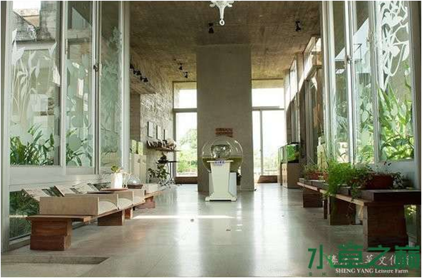 这个水草农场也是一样,就是它用水草很小的一个主题,做出来非常丰富的内容。这个是台湾获奖的作品,我们看到说它其实有几个区,一个是水草文化艺术区,它有一个水草文化馆,在这个文化馆里面他讲说水草有多少种,有哪些著名的诗人写过跟水草相关的诗。比如说徐志摩的诗就写在这个墙上。水草有什么用途,水草怎么来做建筑的一部分。文化馆也很小,可能就是80到100平米。大家通过对水草文化有的了解,又在它的外围环境看到了各种各样的景观化的水草,就有了消费的欲望。它就把你引到水草休闲区里面。有温室栽培区,有产业的空间和养殖区。除了看和体验以外,有一个水草餐厅,这个水草餐厅里面做的菜都是水草,当然比如说海带也是水草,水里面的植物,可以用来做餐饮,都在这个餐厅里面可以吃到。