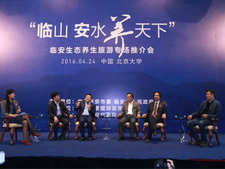 临安位于浙江省西北部,是长江三角洲南端的一颗绿色明珠。作为首批全国生态建设示范市,凭借得天独厚的自然生态优势,临安旅游业迅速崛起,“全力打造临安生态旅游第一品牌”成为临安发展旅游产业的新起点。为了促进临安生态旅游产业的深度发展,中共临安市委市政府携手大地风景国际旅游集团,共同举办了“临安生态养生旅游专场推介会”。