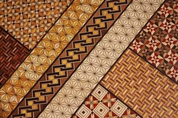 我们初看寄木细工的工艺品,觉得这些图案没什么特别,但实际上图案里每种颜色都是来自于天然木材的颜色。可以使用的木材有很多种,颜色也多种多样。每种木材有不同的颜色纹理、不同的香味和触感。根据不同木材的特性把它们组合起来,就是寄木细工工艺的基础。