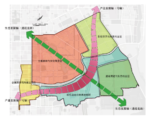 1.旅游与文化商贸区:突出盛唐主题文化,以文化旅游为突出特色的大5A国际景区,运营模式为“遗产文化+主题旅游+综合地产”。