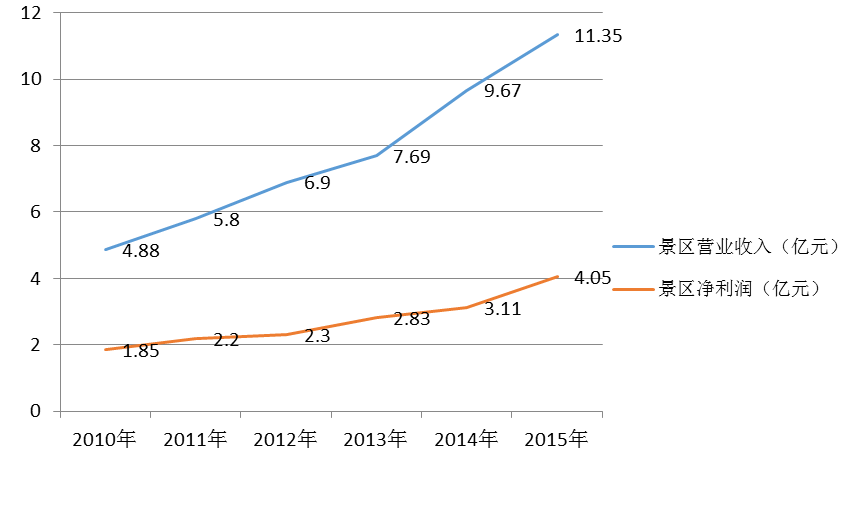 图7:2010—2015年乌镇景区营业收入及利润分析