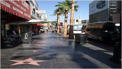 (二)好莱坞星光大道:好莱坞星光大道建于1958年,是条沿美国好莱坞大道与藤街伸展的人行道,上面有2000多颗镶有好莱坞名人姓名的星形奖章,以纪念他们对娱乐工业的贡献。