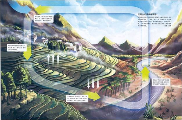 世界文化遗产在红河评遗的景观评语中写道,“红河哈尼梯田文化景观所体现的森林、水系、梯田和村寨四素同构”系统符合世界文化遗产标准,其完美反映的精密复杂的农业、林业和水分配系统,通过长期以形成的独特的社会经济宗教体系得到了加强,彰显了人与环境互动的重要模式。它说的就是中国西南少数民族地区人类生存的样本。