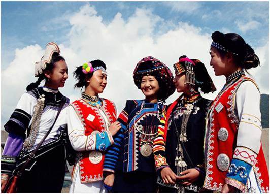 哈尼族的服饰,虽然是同一个民族,但生活的区域在不一样支系不同,他们的服装是不一样的,呈现出丰富多样的色彩和款式,和谐多元,有一个共同点,都是农耕历史文化的产物。比如弈车人的服饰,短衣短裤,有传奇故事,穿在身上,相当于把历史文化穿在身,展现健美理念,表达对祖先的怀念,又便于梯田劳作。